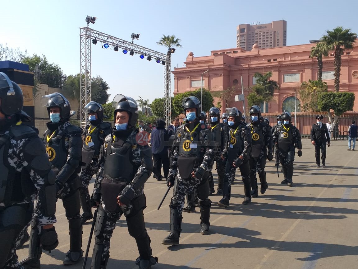 تفقد اللواء أشرف الجندي مساعد وزير الداخلية  لمديرية أمن القاهرة، ميدان التحرير، لمتابعة الترتيبات النهائية لموكب المومياوات الملكية، يرافقه عدد من ضباط المديرية.