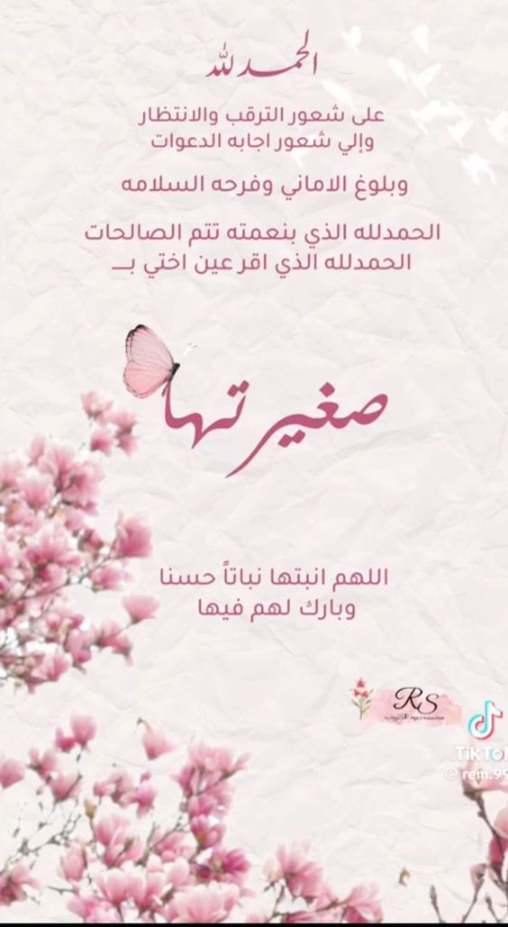 - مبروك قدوم النور إلى حياتكم، أسأل الله أن يجعله من الصالحين.