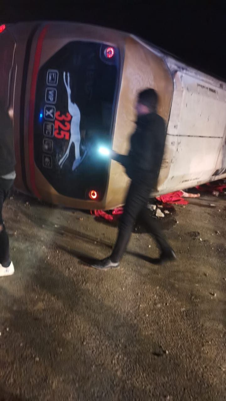 ننشر أسماء المصابين في انقلاب أتوبيس سياحي أعلى محور الضبعة