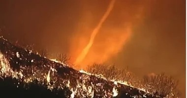 واستمرارًا لسلسلة المشاهد المرعبة الناتجة عن حرائق الغابات في لوس أنجلوس، رصدت كاميرات الفيديو ظاهرة غريبة تعرف باسم الإعصار الناري، وظهر هذا العمود الناري المثير للقلق في منطقة باسيفيك باليساديس، حيث كانت المدينة تعاني من حرائق مميتة أدت إلى تدمير آلاف المنازل.