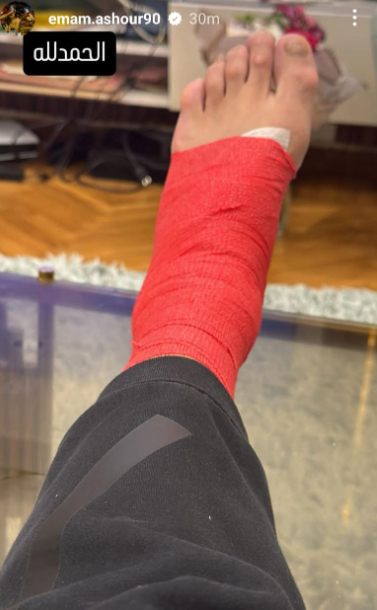 وقد أعلن اللاعب إمام عاشور عن إصابته بعد مباراة الجونة، ونشر لاعب النادي الأهلي عبر حسابه على الانستجرام صورة له، وهو مصاب معلقا: الحمدالله.
