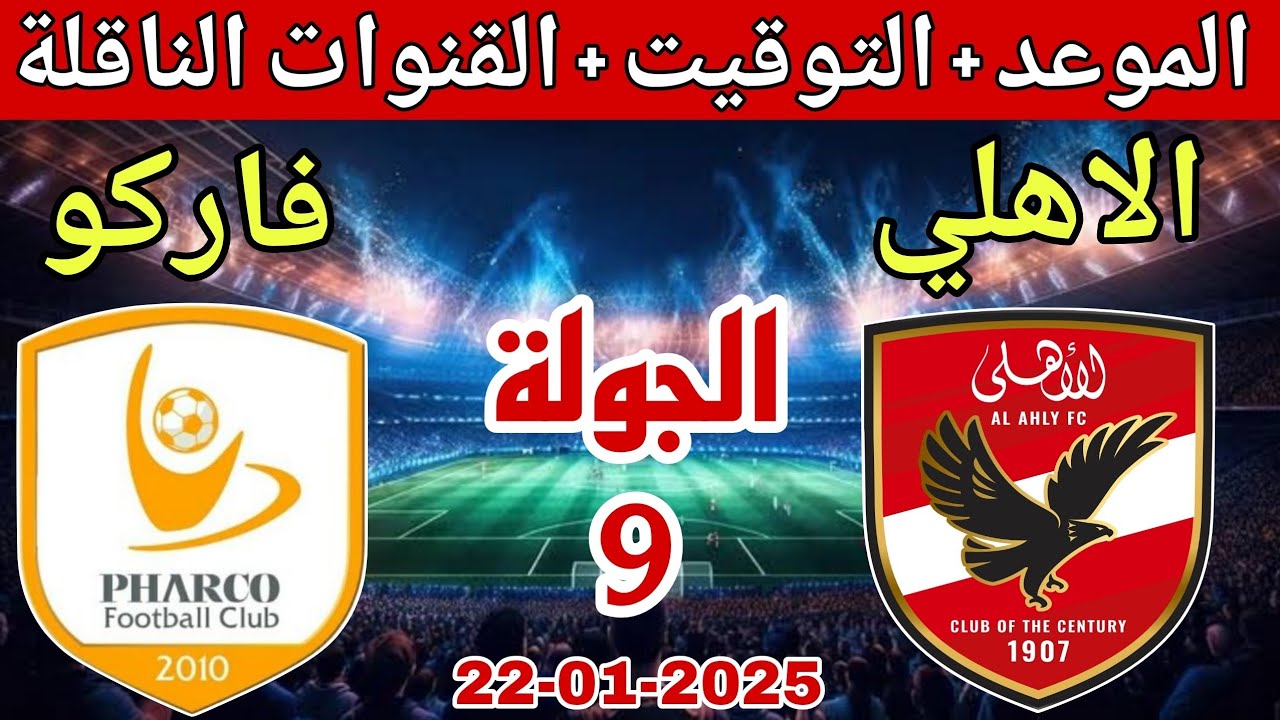 يواجه الفريق الأول للنادي بالأهلي فاركو في إطار منافسات الجولة التاسعة من عمر مسابقة الدوري المصري الممتاز موسم 2024-25، يوم الأربعاء الموافق 22 يناير 2025، حيث تنطلق المواجهة في تمام الساعة الرابعة عصرا بتوقيت القاهرة، وعن موعد مباراة الأهلي وفاركو في دوري نايل في عدد من الدول العربية، فجاء كالتالي: