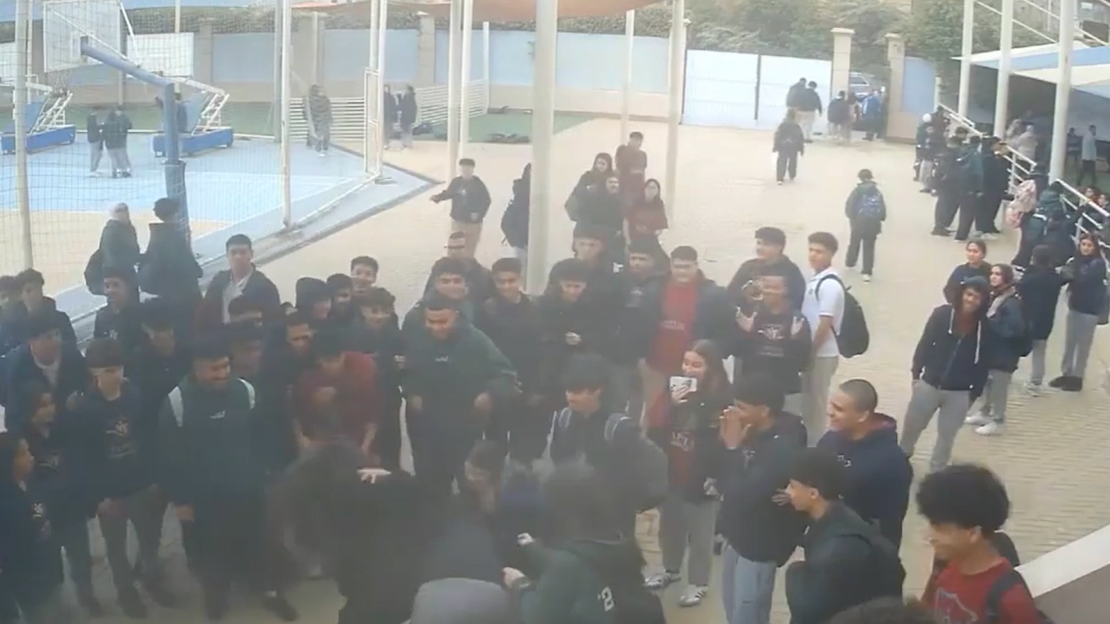وأظهر الفيديو لحظات تحدث الطالبات مع زميلتهن ثم أنهالوا عليها بالضرب وسط مشاهدة صامتة من زملائهم، ومنهم من وقف يصور فيديو للمشاجرة.