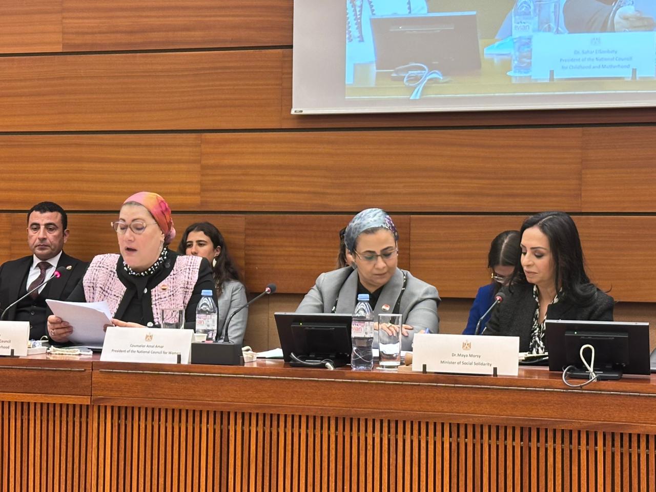 وأعربت الدكتورة مايا مرسي في كلمتها عن سعادتها أن تنظم هذه الفعالية وزارة التضامن الاجتماعي مع المجلس القومي للمرأة والمجلس القومي للطفولة والأمومة والمجلس القومي للأشخاص ذوي الإعاقة في مقر الأمم المتحدة بجنيف، وبما يدل على الشراكة القوية بين الحكومة المصرية والمجالس الوطنية المستقلة.