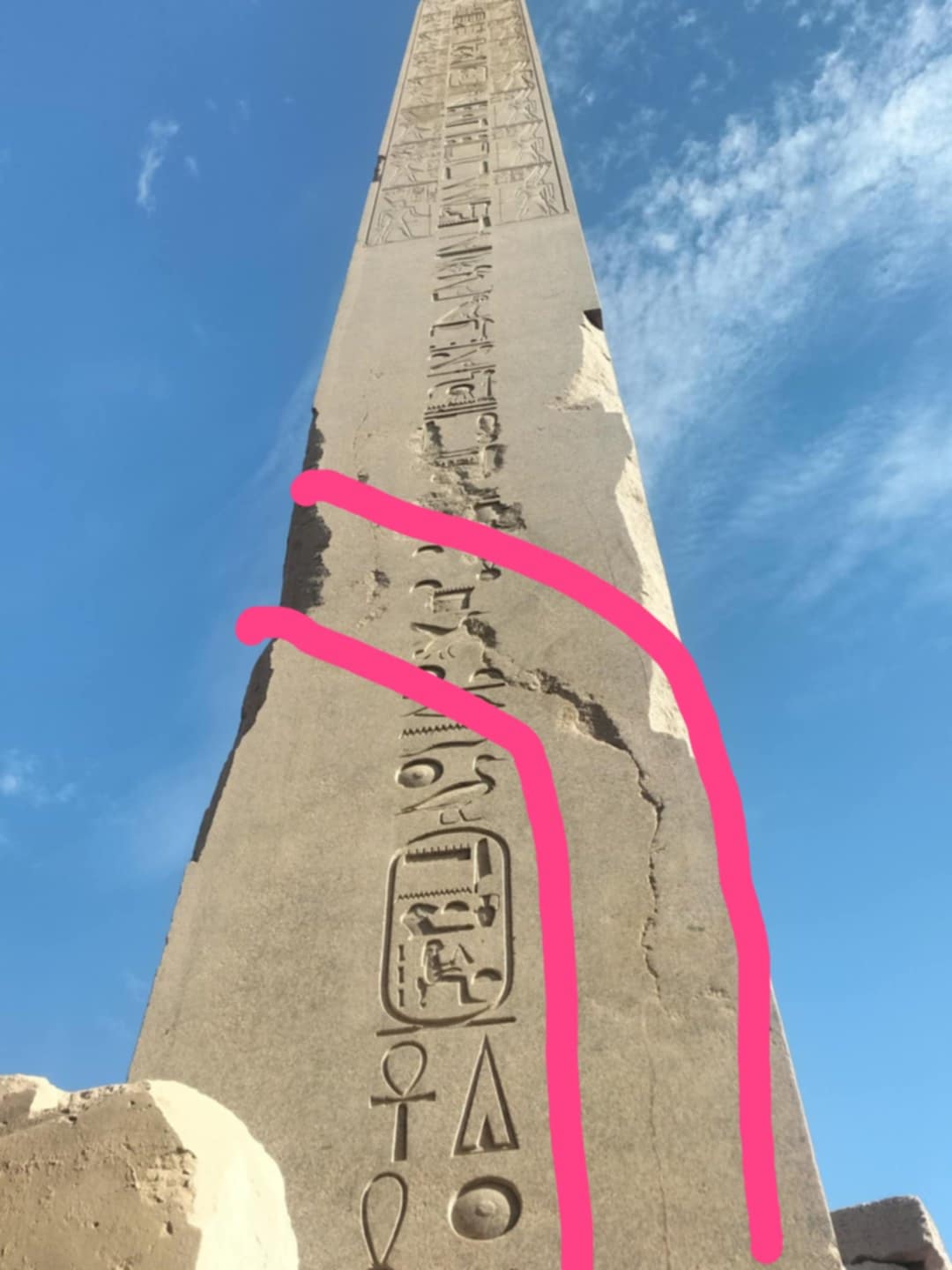 تداول مستخدمو موقع التواصل الاجتماعي فيس بوك، صورة لـ مسلة الملكة حتشبسوت الموجودة في معابد الكرنك بمحافظة الأقصر، ويظهر عليها شرخًا من الأسفل.
