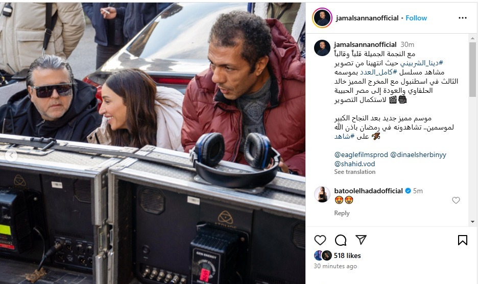ونشر جمال سنان، صورا من الكواليس عبر حسابه الشخصي بموقع تبادل الصور والفيديوهات إنستجرام، وكتب قائلًا: مع النجمة الجميلة قلبًا وقالبًا دينا الشربيني حيث انتهينا من تصوير مشاهد مسلسل كامل العدد بموسمه الثالث في اسطنبول مع المخرج المميز خالد الحلفاوي والعودة إلى مصر الحبيبة لاستكمال التصوير، موسم مميز جديد بعد النجاح الكبير لموسمين.. تشاهدونه في رمضان بإذن الله على شاهد.