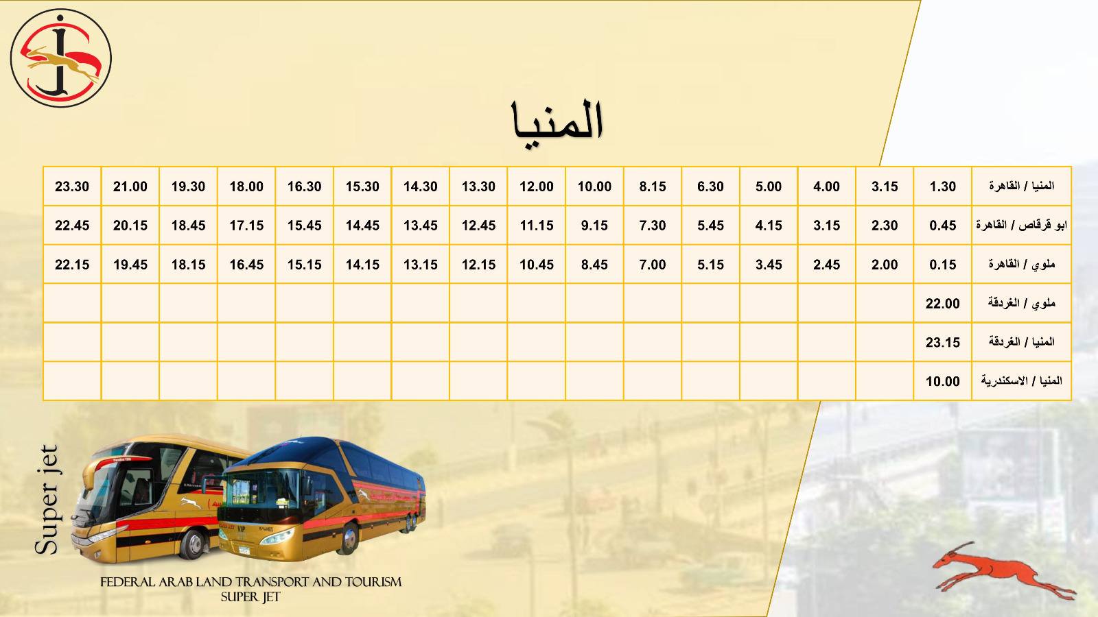 مواعيد تشغيل الخطوط الجديدة من أتوبيسات السوبر جيت