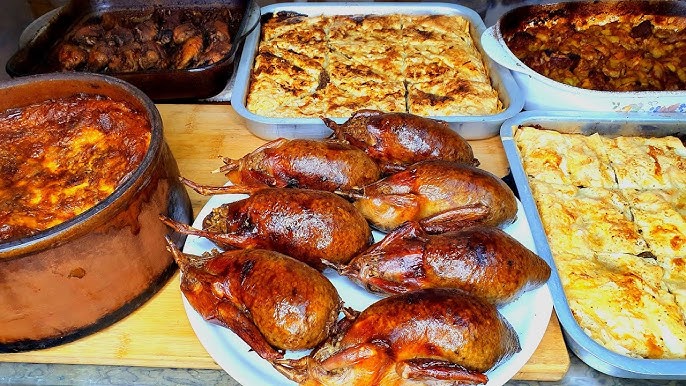 - محاشي وفراخ مشوية وسلطة زبادي وشوربة ومخللات.