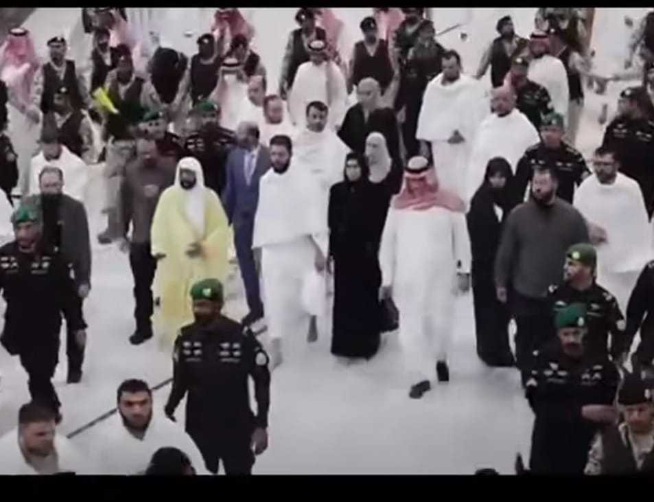 وأظهر الفيديو الذي انتشر على نطاق واسع على وسائل التواصل الاجتماعي الدروبي والشرع وهما يدخلان الكعبة معًا، وهو مشهد غير معتاد نظرًا للظهور العام المنخفض للسيدة الأولى الجديدة.