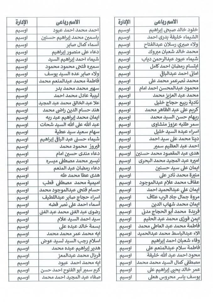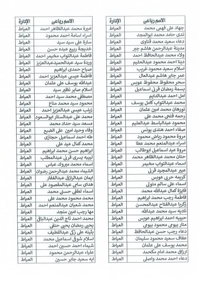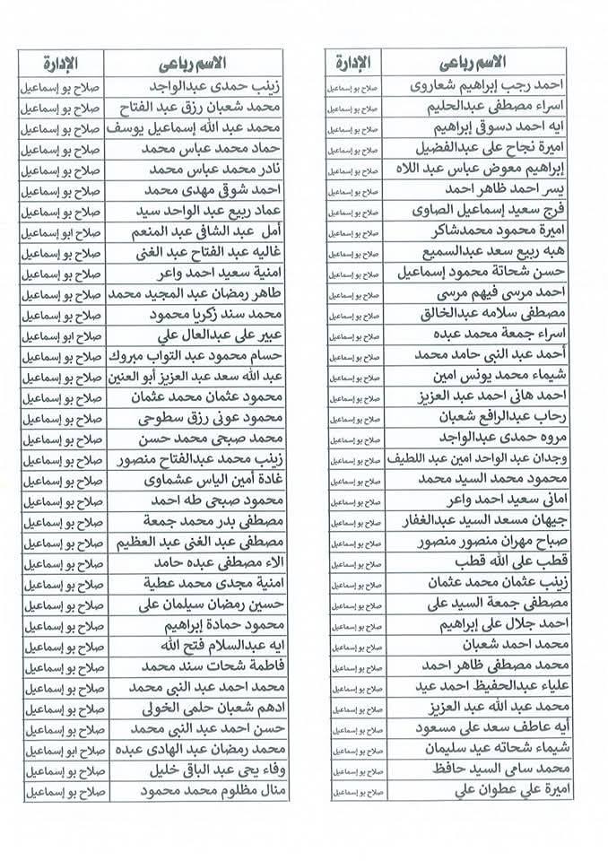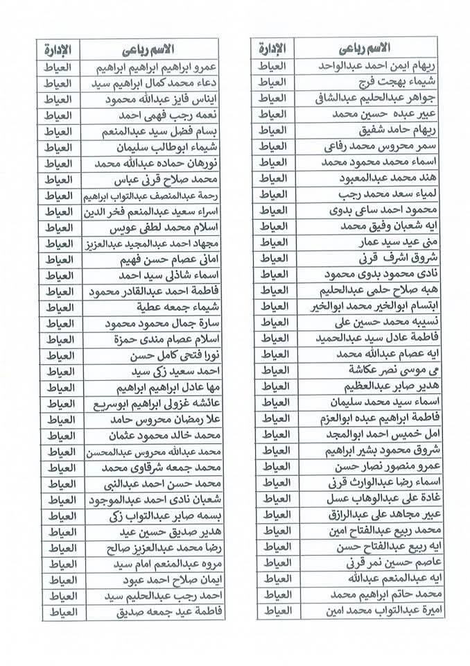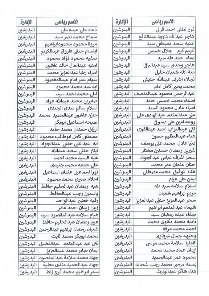 ونشرت محافظة الجيزة عبر صفحاتها الرسمية، أسماء المقبولين وعليهم المتابعة للإفادة بمكان وموعد توقيع العقود واستلام خطابات العمل، حيث جاءت الأسماء كالتالي: