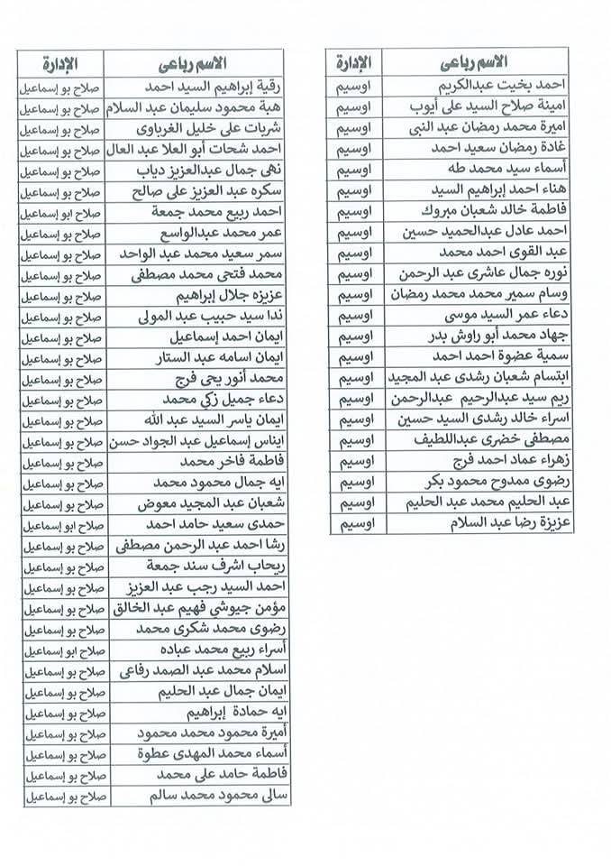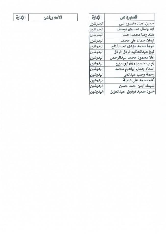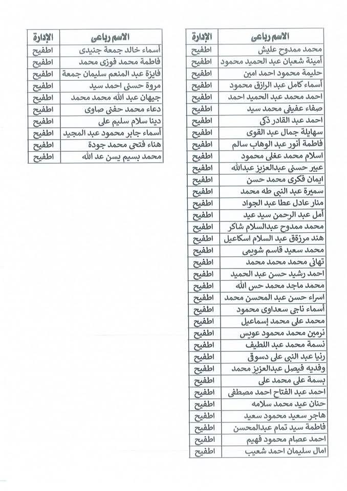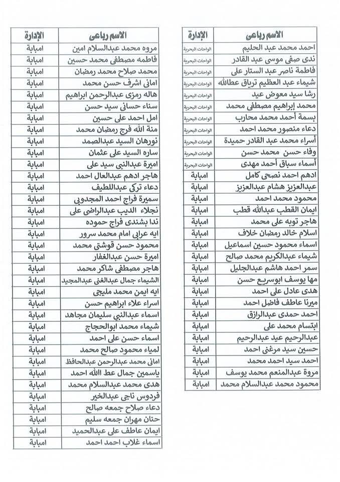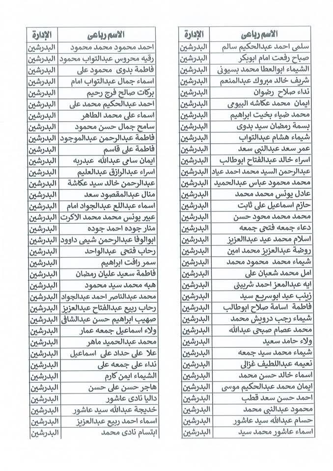 ونشرت محافظة الجيزة عبر صفحاتها الرسمية، أسماء المقبولين وعليهم المتابعة للإفادة بمكان وموعد توقيع العقود واستلام خطابات العمل، حيث جاءت الأسماء كالتالي: