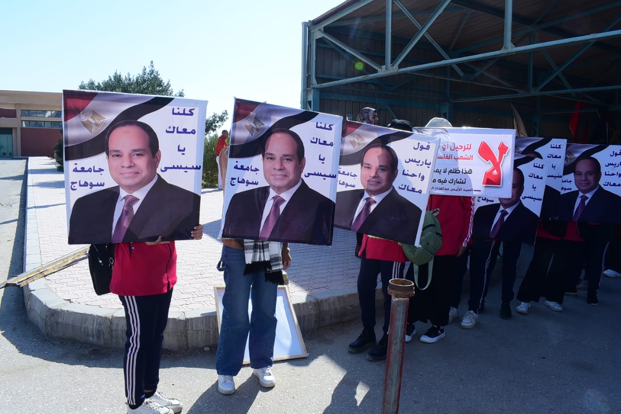 خرج الآلاف من طلاب جامعة سوهاج، منذ قليل، في مسيرة حاشدة يقودها الدكتور حسان النعماني رئيس الجامعة، والخبير الاستراتيجي اللواء سمير فرج، لدعم وتأييد قرارات الرئيس عبد الفتاح السيسى رئيس الجمهورية، وموقفه الحاسم والقوي في دعم القضية الفلسطينية والرفض القاطع لتهجير الفلسطينين من أراضيهم، وذلك بمقر الجامعة الجديد.