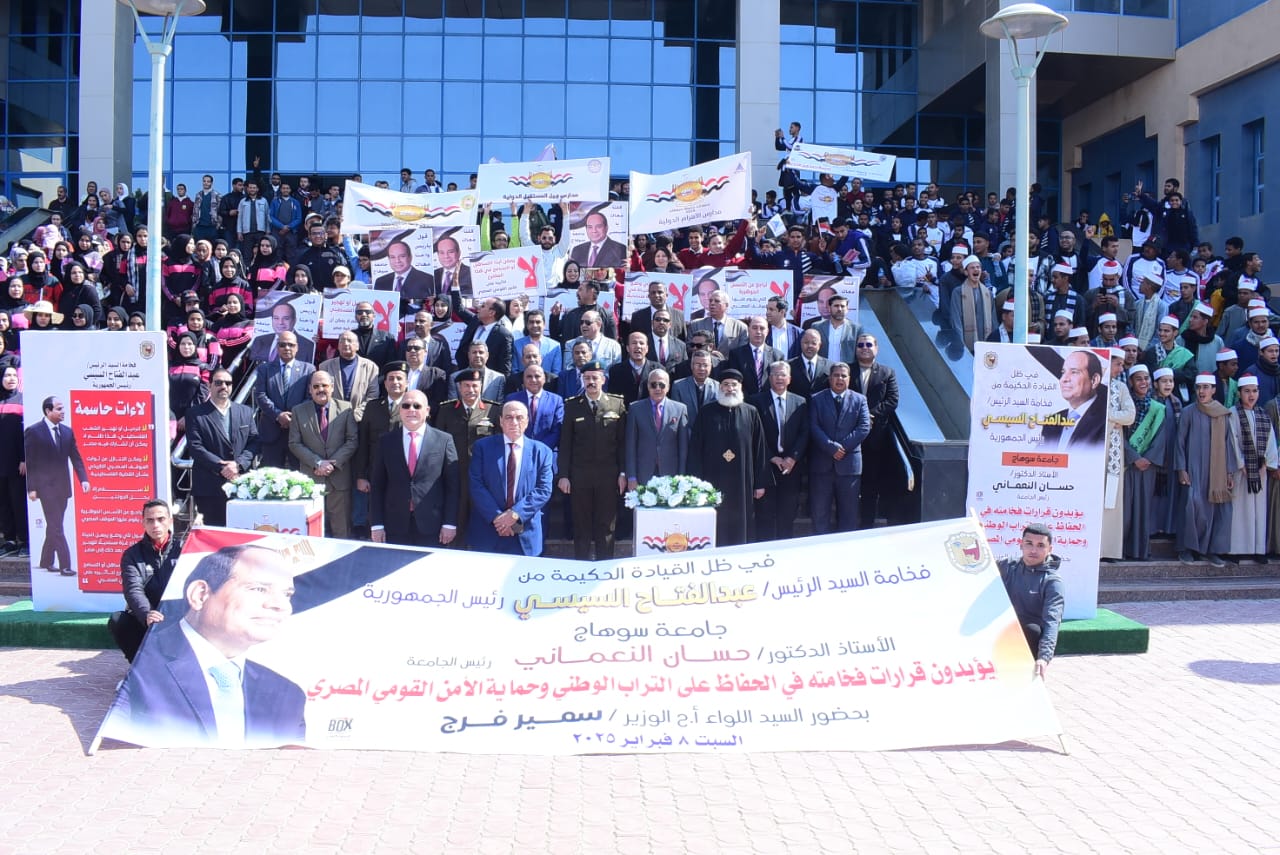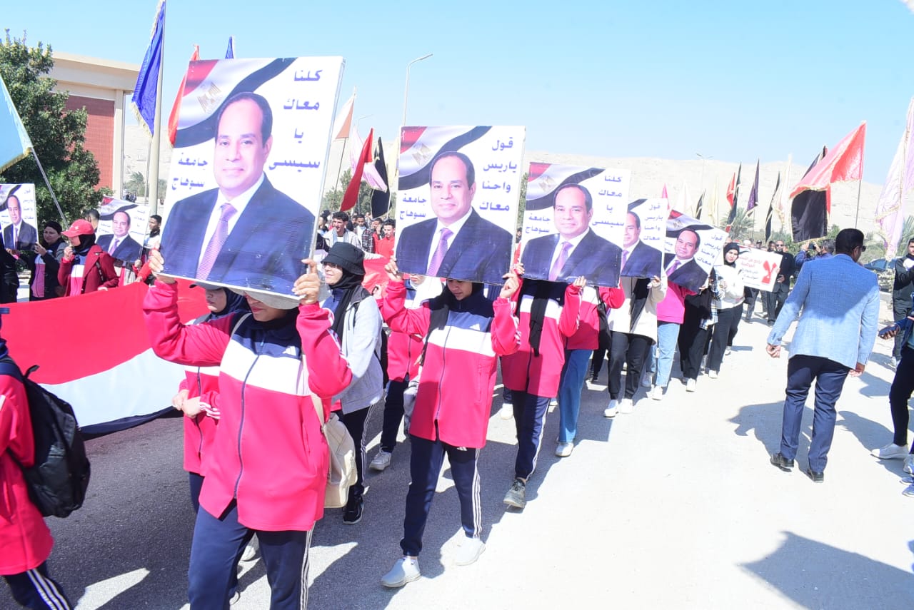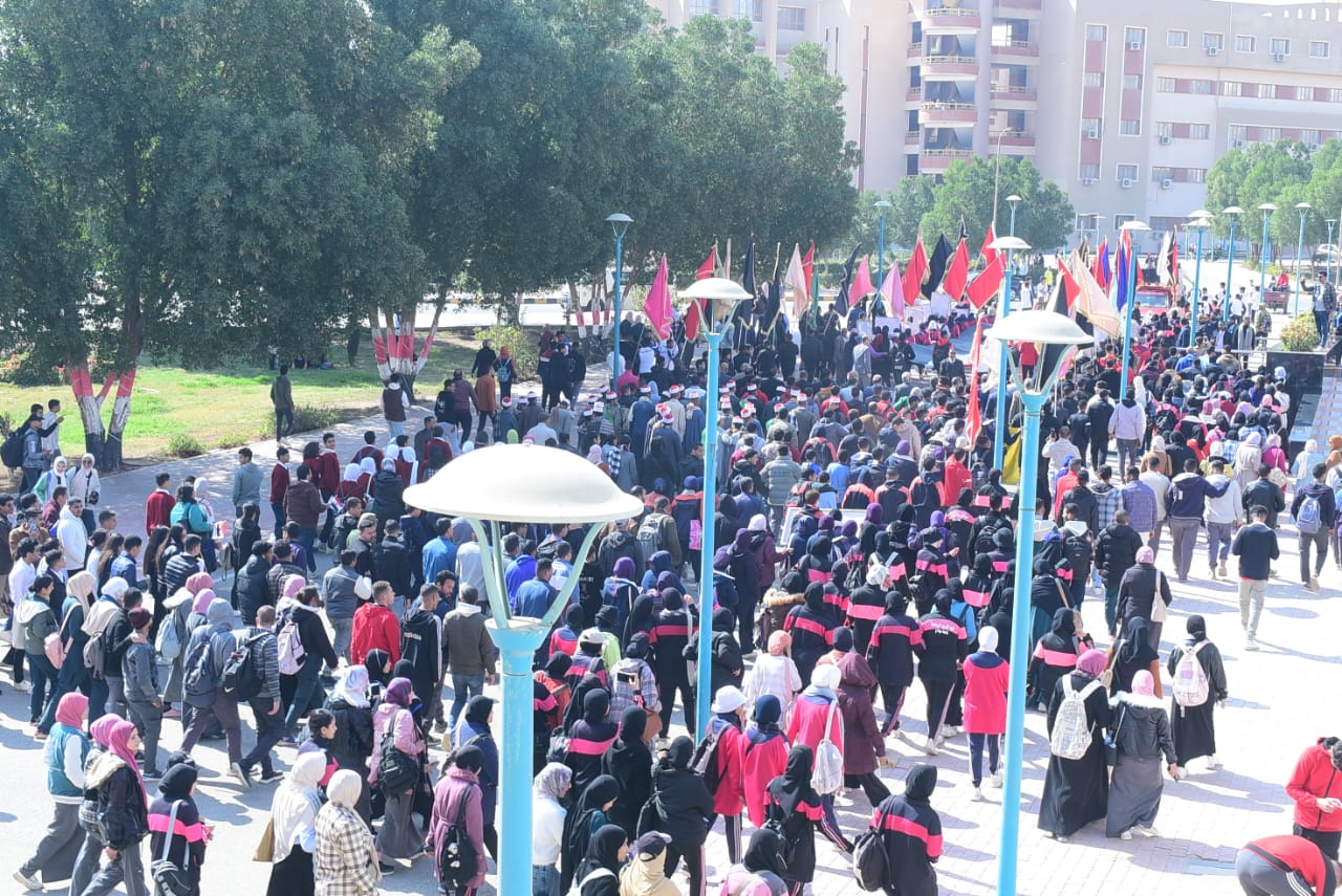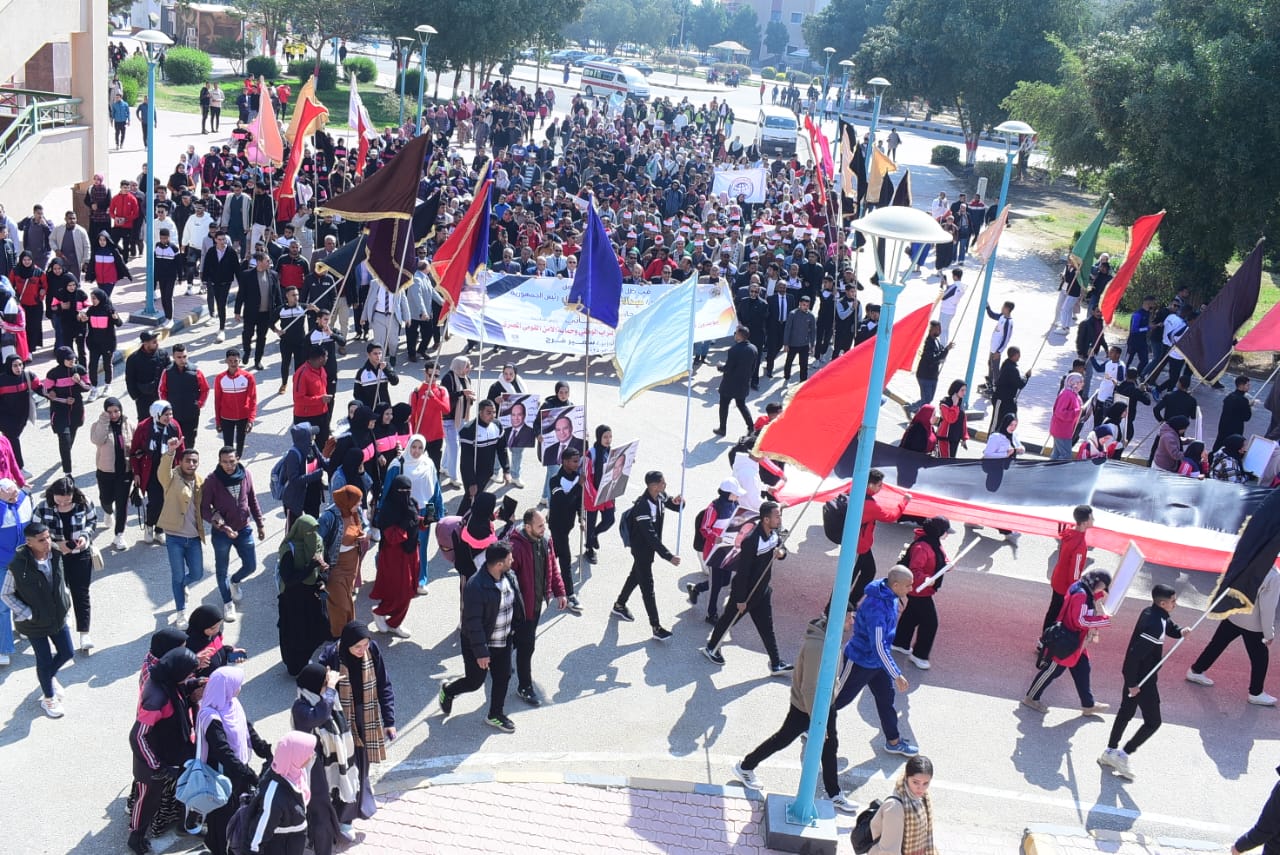 بمشاركة 5 آلاف طالب.. مسيرة حاشدة بجامعة سوهاج لدعم الرئيس ورفض تهجير الفلسطينيين| صور