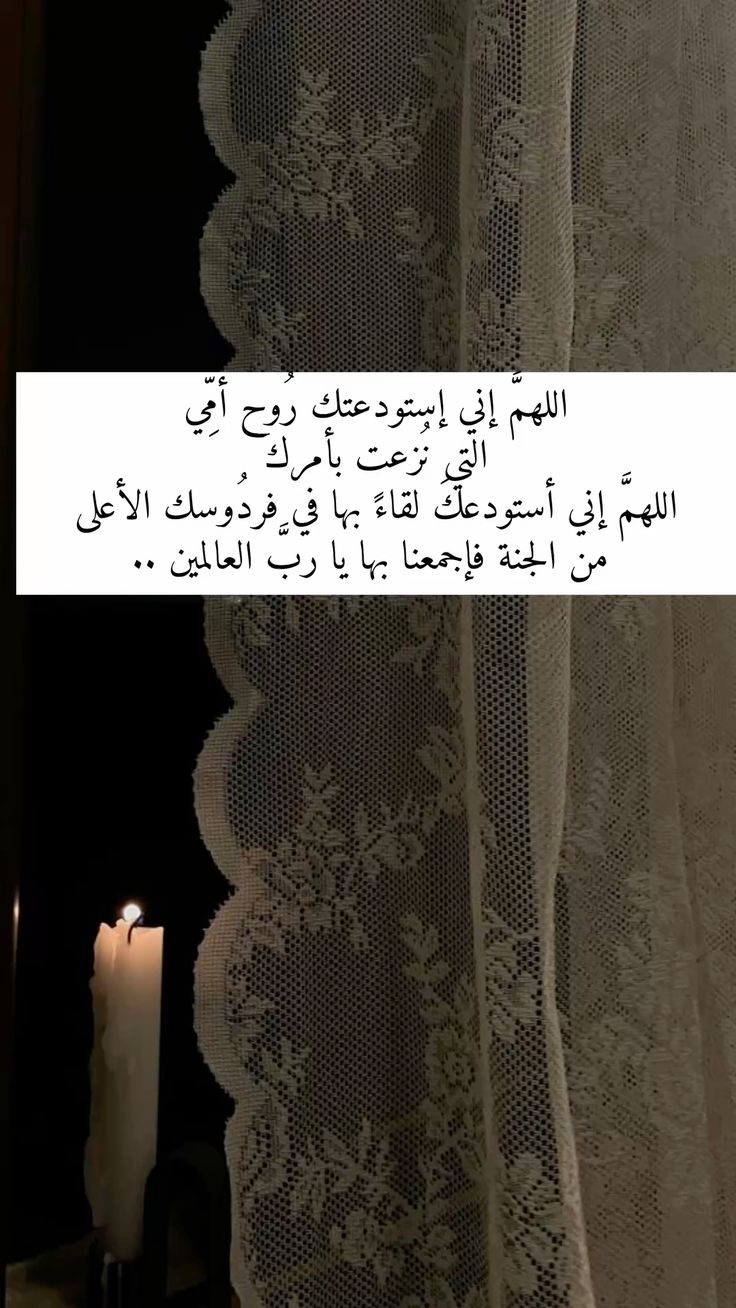 - اللهم اجعل الفردوس الأعلى مستقرها ومثواها، واجمعنا بها في مستقر رحمتك ودار كرامتك.