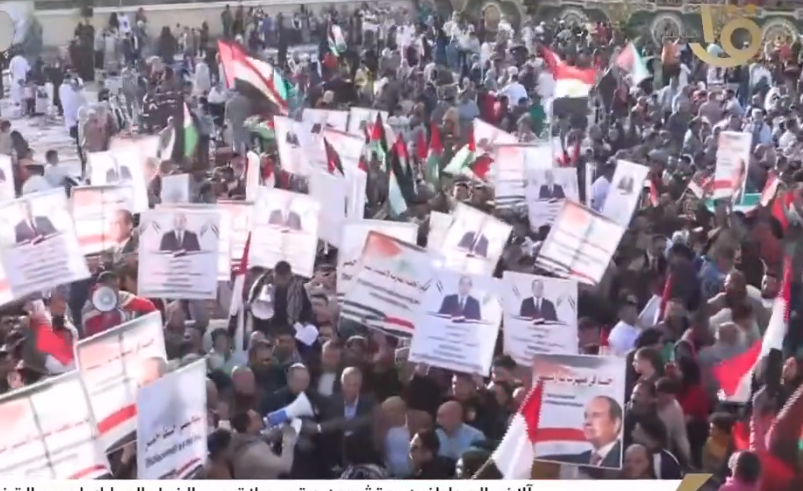 احتشد ملايين المصريين في الساحات العامة لمساندة موقف. القيادة السياسية المصرية والقضية الفلسطينية ورفض التهجير، وردد المواطنون هتافات تندد بأي مخطط يجرد الفلسطينيين من حقوقهم المشروعة.