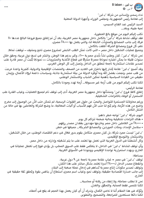 تعطلت خطط بلبن على أثر الإغلاق الذي ضربها في مصر والسعودية وهو ما أكدته الشركة، حيث إن الإغلاق سيؤدي إلى غياب علامة مصرية ناجحة عن 9 دول عربية وتوقف تصدير مكونات إنتاج مصرية تُساهم في إدخال عملة صعبة إلى البلاد وتوقف نمو، وغياب اسم مصري استطاع أن ينافس بقوة ويُحقق ثقة حقيقية في الخارج.