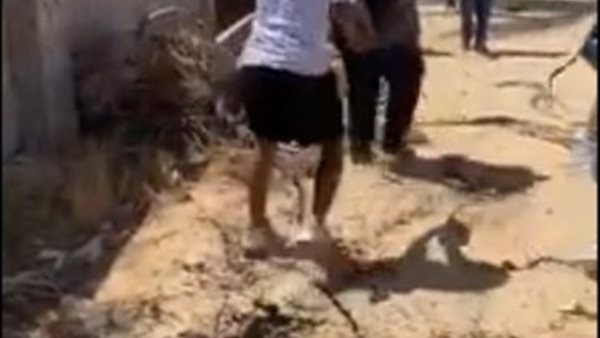 وظهر في الفيديو المتداول مجموعة من الأطفال يلقون مادة سوداء اللون وأتربة على وجهه وسط تصفيق وتصوير وسخرية منه.