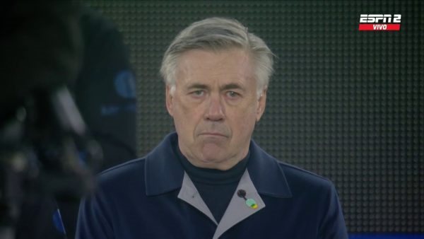 وبكي الإيطالي كارلو أنشيلوتي المدير الفني لنادي إيفرتون، أثناء وقوف اللاعبين دقيقة حداد على روح أسطورة كرة القدم الأرجنتينة ديجو أرماندو مارداونا قبل انطلاق المباراة.