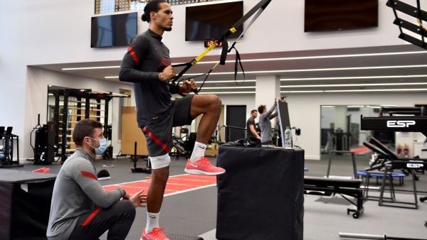 وحضر فان دايك، فى مقر النادي بالصالة الرياضية بعد إجراء عملية رباط صليبي ناجحة في الأسابيع الماضية.