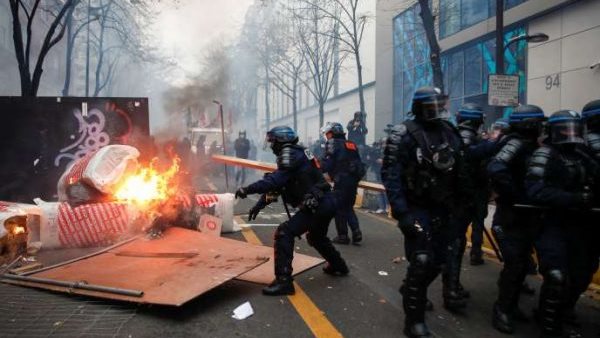 وأوضحت الصحيفة أن قوات الأمن الفرنسية قد وضعت المتاريس لمنع المتظاهرين من أي أعمال عنف.