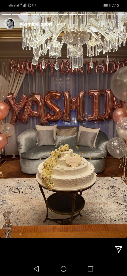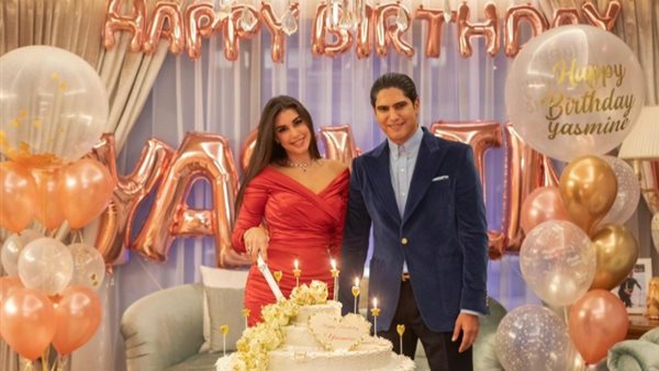 أجواء احتفال ياسمين صبري بعيد ميلادها برفقة زوجها أبو هشيمة