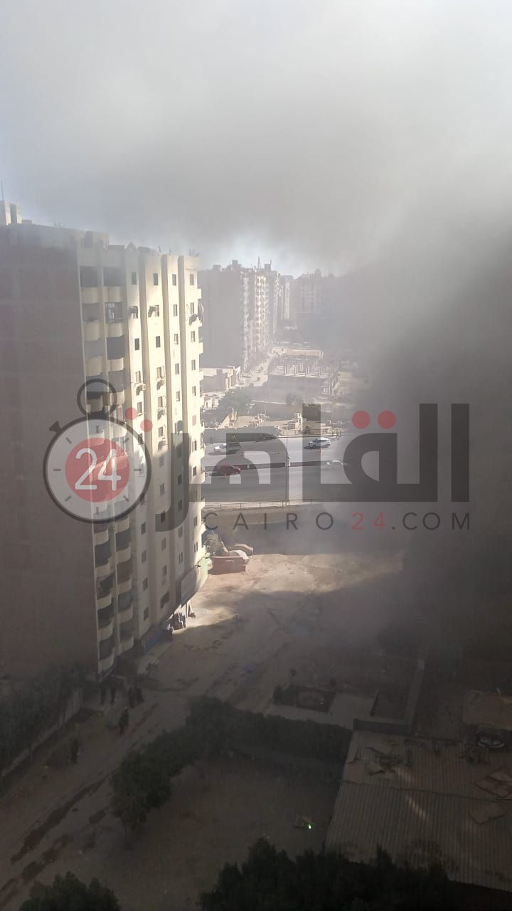 يحاول رجال الإطفاء السيطرة على حريق نشب في محزن أحذية بمنطقة الطوابق في الهرم، ولايزال مستمرا منذ أمس.