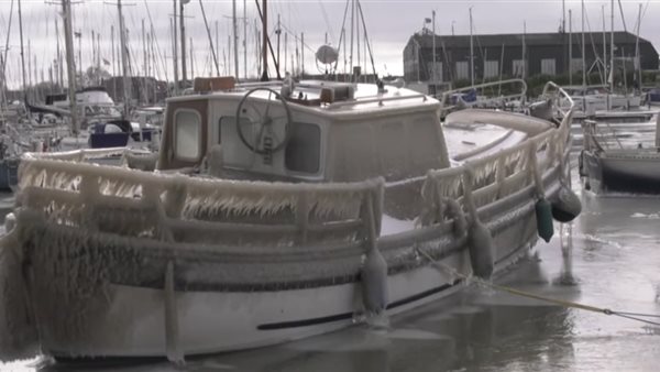 وأظهر فيديو مدته 1:53 دقيقة، تحول الأشياء إلى مجمدات، يغطيها الجليد من جميع النواحي، منها القوارب، حيث تشهد هولندا درجة حرارة أقل كم 15 درجة مئوية.