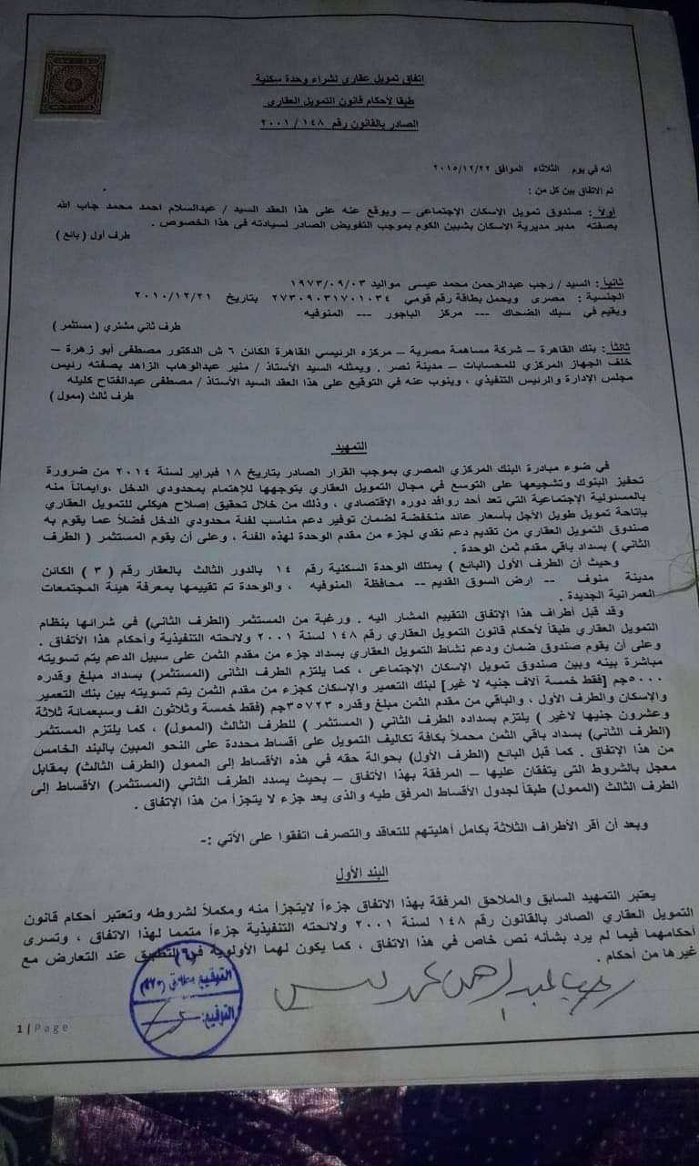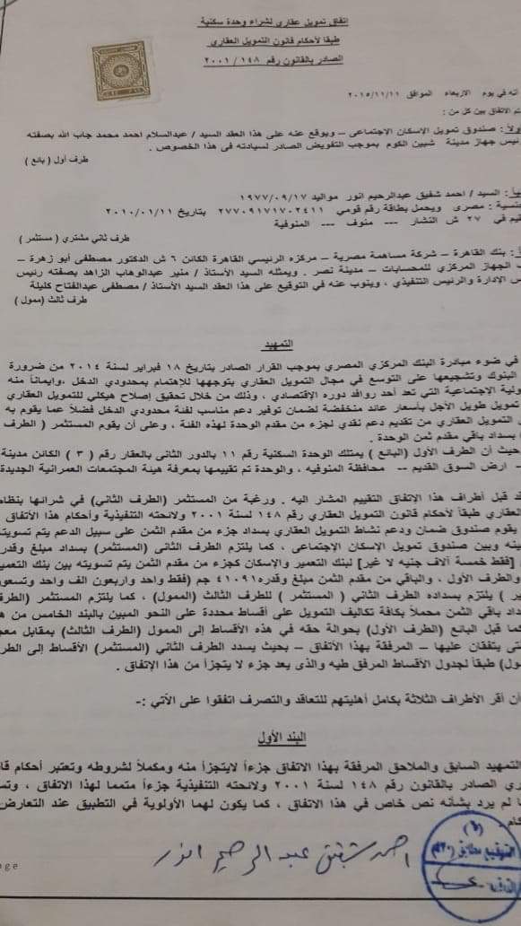 ويقول رجب عيسى أحد المتضررين من عدم تسلم الوحدات الاجتماعي بمدينة منوف، أنهم تقدموا للحصول على شقق سكنية، بمساكن الإسكان الاجتماعي من خلال الحجز في مكاتب البريد، بدفع 5 آلاف جنيه عام 2014، مثل باقي المواطنين في أنحاء الجمهورية، وبعدها أرسل لهم بنك القاهرة للتعاقد، وقاموا بدفع مبلغ 45 ألف جنيه، على أن يتم دفع باقي المبلغ عن طريق نظام الأقساط الشهرية، بواقع 700 جنيه، لمدة 15 عامًا، وتم إتمام التعاقد والتوقع على العقود.