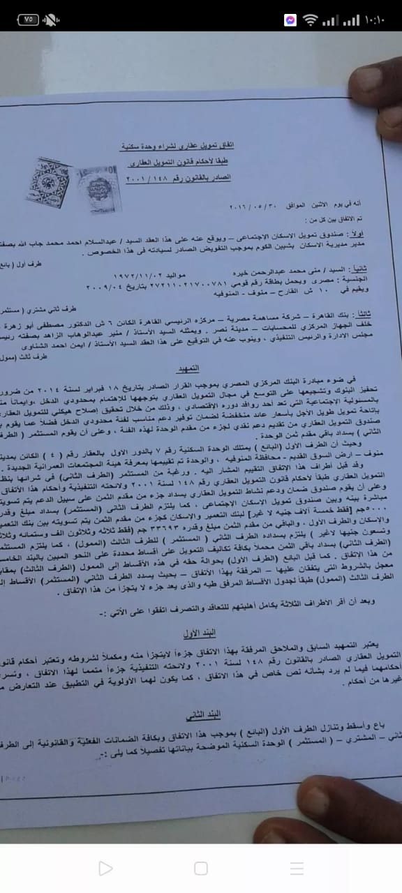 تلقى موقع "القاهرة 24" استغاثة من مواطنين بمحافظة المنوفية، وذلك بعد تعاقدهم على شقق الإسكان الاجتماعي، بمدينة منوف عام 2014 وإلى الآن يسددون أقساطًا فقط، ولم يتمكنوا من الحصول على تلك الوحدات، وقاموا بطرق كل الأبواب، ولكن جميعها كانت مغلقة في وجوههم.