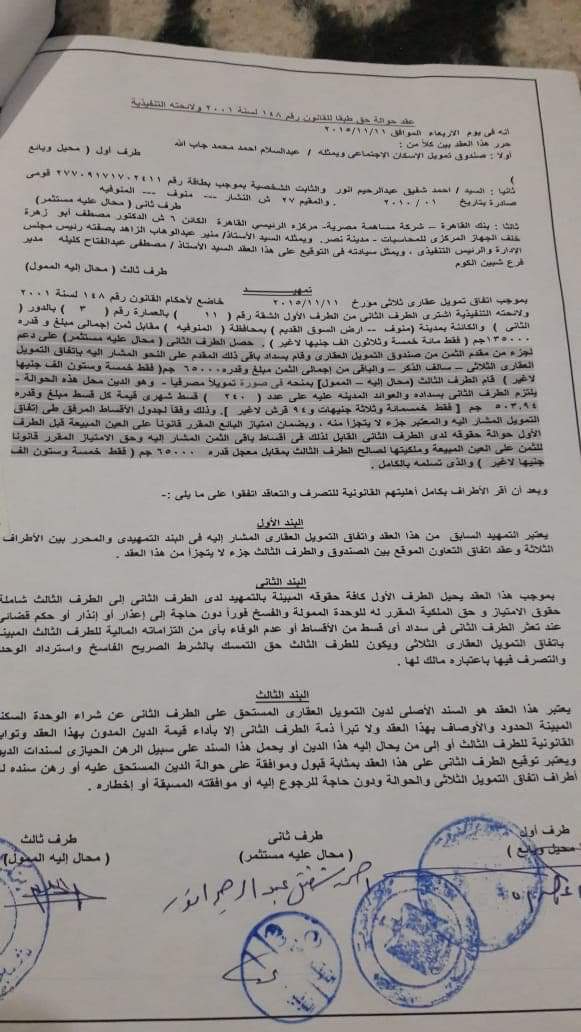 وأضاف أحمد محمد كهرمان، أحد المتضررين، بعد التعاقد أبلغونا في بنك القاهرة، أن نذهب لمديرية الإسكان، لتسلم الشقق، وعند الذهاب أبلغنا المسئولين بأن المشروع غير تابع لهم، وأنه تابع إلى صندوق تمويل الساحل الشمالي بالإسكندرية، وقمنا بالذهاب لصندوق تمويل الساحل الشمالي فكان ردهم علينا أننا لسنا بتابعين لهم وليس لهم دخل بمدينة منوف، عدنا إلى مديرية الإسكان ومنها إلى مجلس مدينة منوف، وآخر ما توصلنا له، “ارفعوا قضية على البنك".