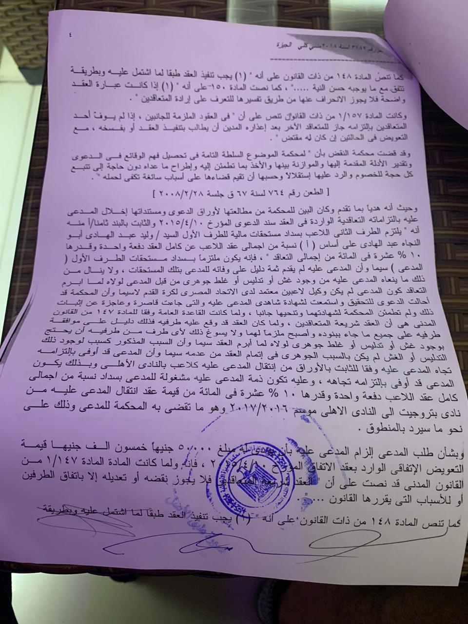 وتابع أن وكيل الشناوي السابق حصل على تأييد نفس الحكم من المحكمة حكم نهائي.