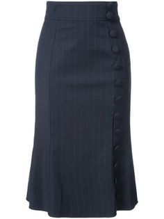 ولإطلالة رقيقة تناسب العود الفرنساوي، صممي التنورة من خلال 3 أزرة فقط من الأعلى، ثم خط رفيع يأتي بجانب لآخر من وسط التنورة، مع بلوزة بنفس لون الخط.