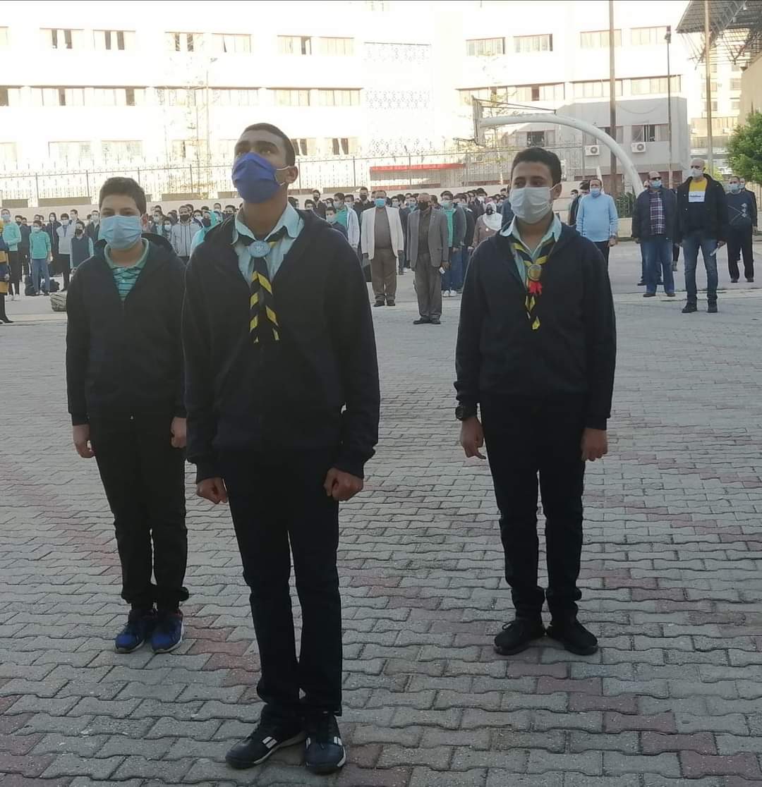 وخلال فقرة الإذاعة المدرسية، تم الترحيب بالطلاب في عودة الدراسة، والتنبيه عليهم بمراعاة التباعد الاجتماعي فيما بينهم أثناء فترات الراحة بين الحصص الدراسية وخلال تواجدهم في الفصول.