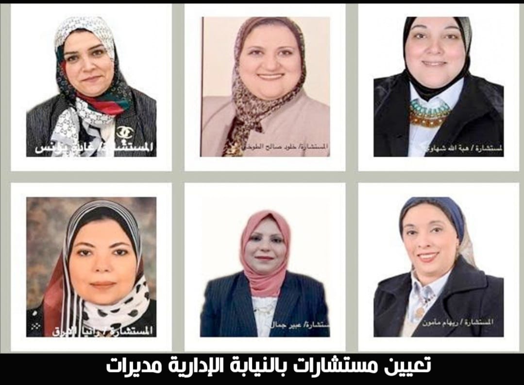 يذكر ان المستشار عصام المنشاوي، رئيس هيئة النيابة الإدارية، أصدر قراراً، بتعيين ستٍ من المستشارات مديرات لعدد من النيابات الإدارية على مستوى الجمهورية وهن: