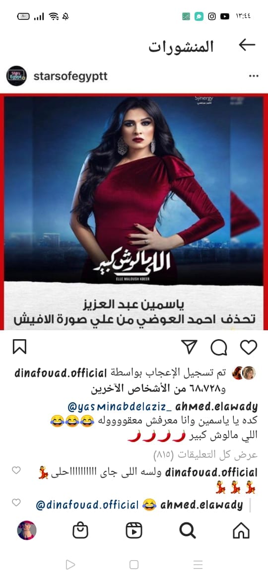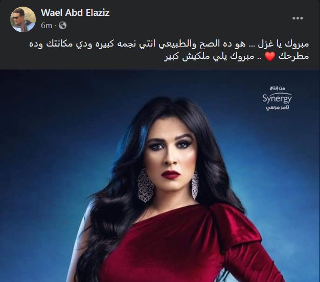 أيضا أعاد وائل عبد العزيز نشر صورة الملصق الدعائي المنفرد لياسمين عبد العزيز في "اللي مالوش كبير"، ليهنئ شقيقته ويعبر عن سعادته بدورها في المسلسل، ويكتب: “مبروك يا غزل، هو ده الصح والطبيعي، إنتي نجمة كبيرة ودي مكانتك وده مطرحك، مبروك ياللي مالكيش كبير”.