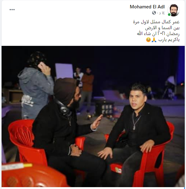 ونشر ماندو العدل صورة تجمعه بعمر كمال من كواليس المسلسل، عبر حسابه الشخصي بموقع التواصل الاجتماعي "فيس بوك"، وقال: “عمر كمال ممثل لأول مرة، بين السما والأرض، رمضان 2021 إن شاء الله، يا كريم يارب”.