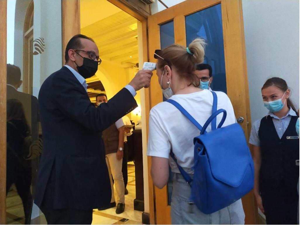 وخلال الزيارة تفقد أعضاء الوفد الإجراءات الاحترازية وضوابط السلامة الصحية التي يتم تطبيقها بالفنادق بمدينة شرم الشيخ، كما قاموا بزيارة مستشفى شرم الشيخ الدولي وتفقد معمل إجراء تحليل PCR.