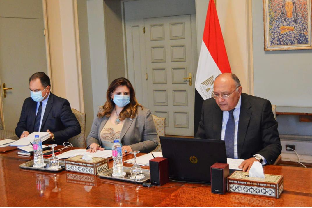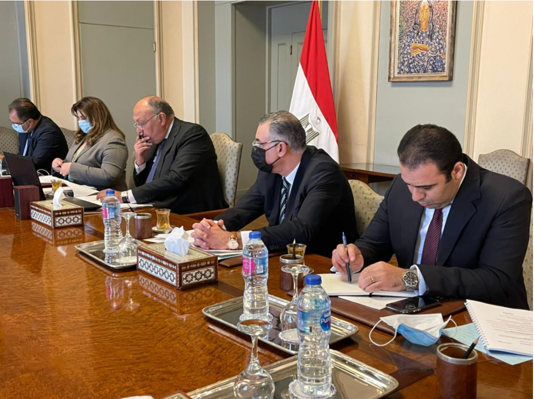 شارك وزير الخارجية سامح شكري، اليوم الخميس، في الاجتماع الوزاري لمجلس السلم والأمن الإفريقي المنعقد افتراضيًا عبر الفيديوكونفرانس لبحث عمليات حفظ السلام في القارة الإفريقية.