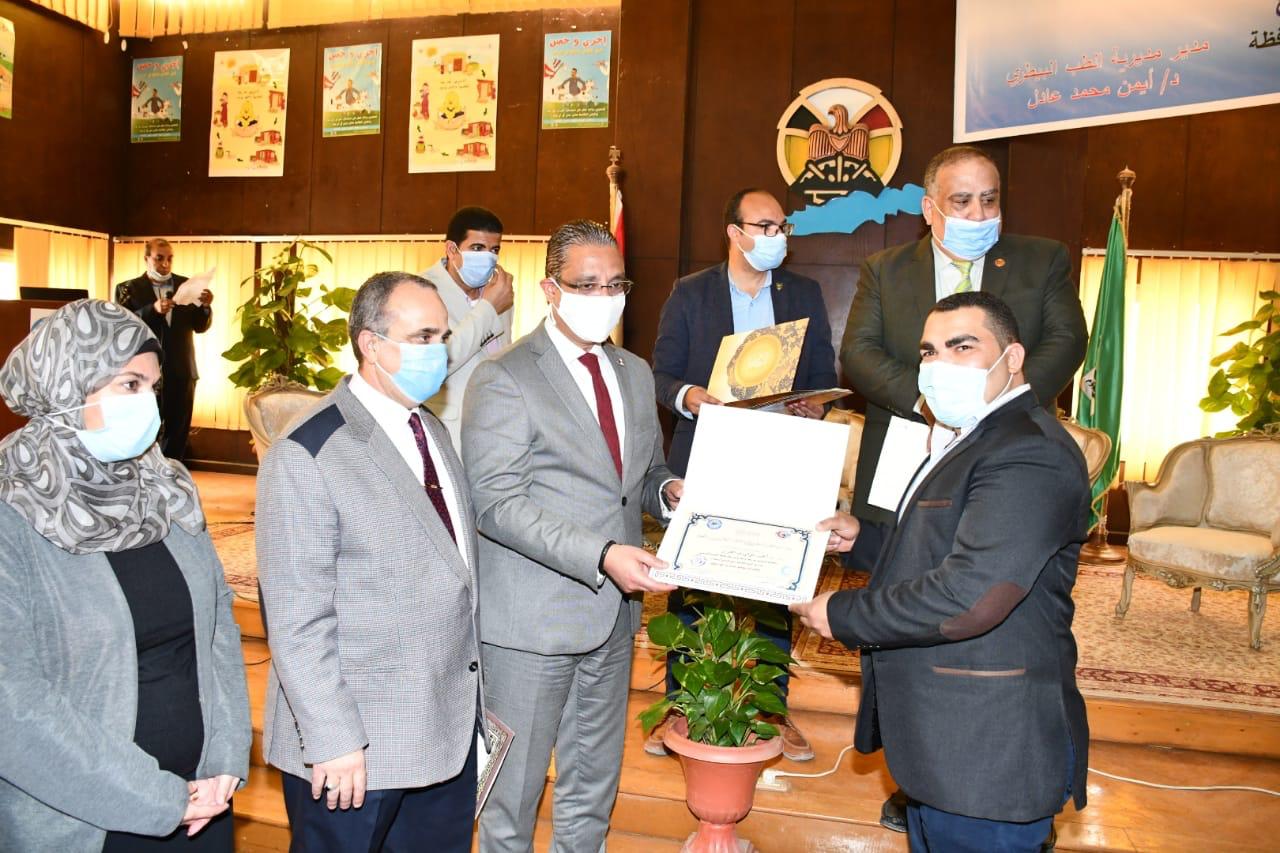وفي الختام قام محافظ الفيوم، بتكريم الأطباء البيطريين والفنيين والإداريين المتميزين، ومنحهم شهادات التقدير لدورهم وجهودهم المتميزة خلال فعاليات الحملة.