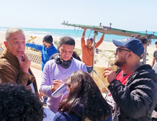 ونشر المؤلف معتز فتيحة عبر حسابه الرسمي بموقع التواصل الاجتماعي “فيس بوك”، صورة جديدة من كواليس التصوير ظهر فيها حميدة يقف أمام شاطئ البحر ويتحدث مع المؤلف.