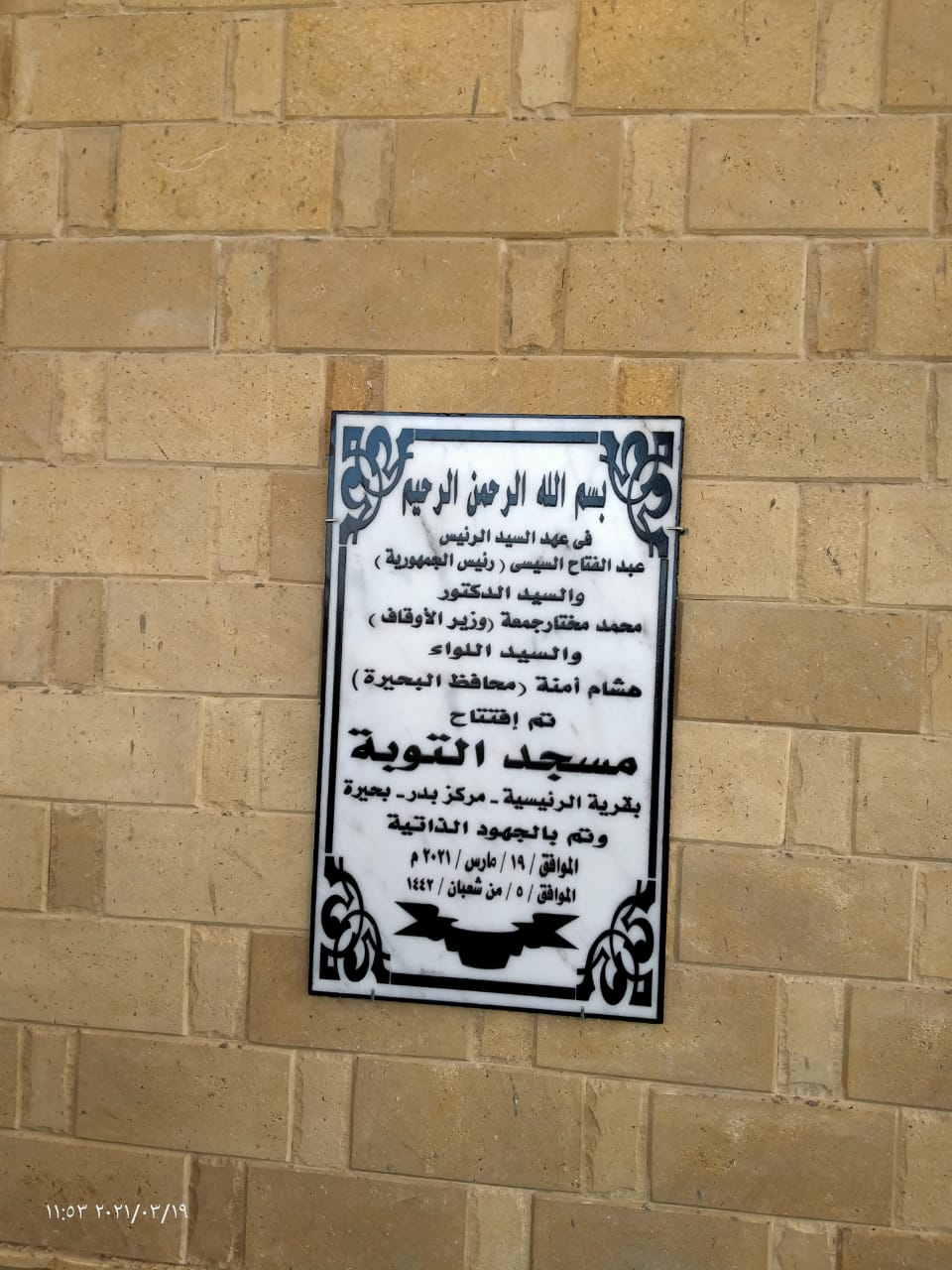 افتتح اللواء هشام آمنة، محافظ البحيرة، مسجد التوبة بدمنهور بعد إعادة إعماره وترميمه بتكلفة إجمالية 2 مليون جنيه، والمقام على مساحة 580 مترًا بحضور المهندس حازم الأشمونى، السكرتير العام، والمحاسب عادل عبد الكريم، رئيس مدينة دمنهور، وأعضاء مجلسي النواب والشيوخ والقيادات الدينية والتنفيذية.