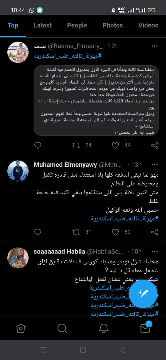 وتصدر هاشتاج "مهزلة تالتة طب الإسكندرية" مواقع التواصل الاجتماعي على مدار اليومين الماضيين، حيث يحاول الطلاب من خلاله توجيه رسالة للجهات المسئولة للنظر فيما يتعرضون له من مشكلات، وعدم استجابة أي من أساتذة الكلية ورؤساء الأقسام للنظر فيها.