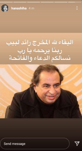 ونشرت شيحا عبر حسابها الشخصى بموقع "انستجرام" عبر خاصية "استوري"، صورة للمخرج الراحل رائد لبيب، وكتبت: "البقاء لله المخرج رائد لبيب ربنا يرحمه يارب نسألكم الدعاء والفاتحة".