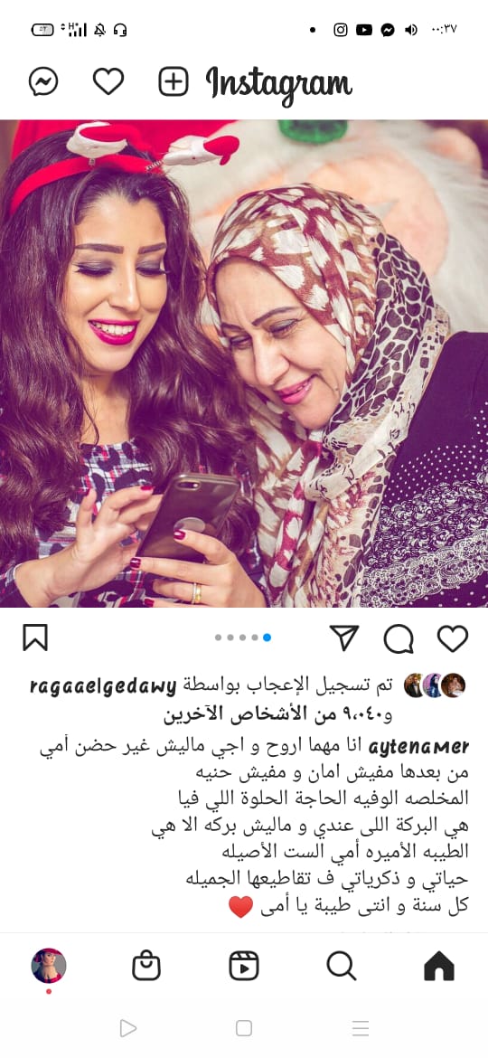 ونشر الفنان احمد مجدي صورة تجمع والدته وزوجته، عبر حسابه الرسمي على موقع تبادل الصور والفيديوهات "إنستجرام" وعلق عليها قائلا: " أدركت مؤخرا إللي كنت بسمعه طول عمري عن بركة الأم، وجود امي في حياتي ودعمها، ودعاها وإيمانا بيا طول الوقت، أشياء لا مثيل لها ولا تقدر أو تزن بأي ميزان سوي ميزان المحبة الا نهائية، كل عيد ام وانتي طيبه يا حبيبتي".