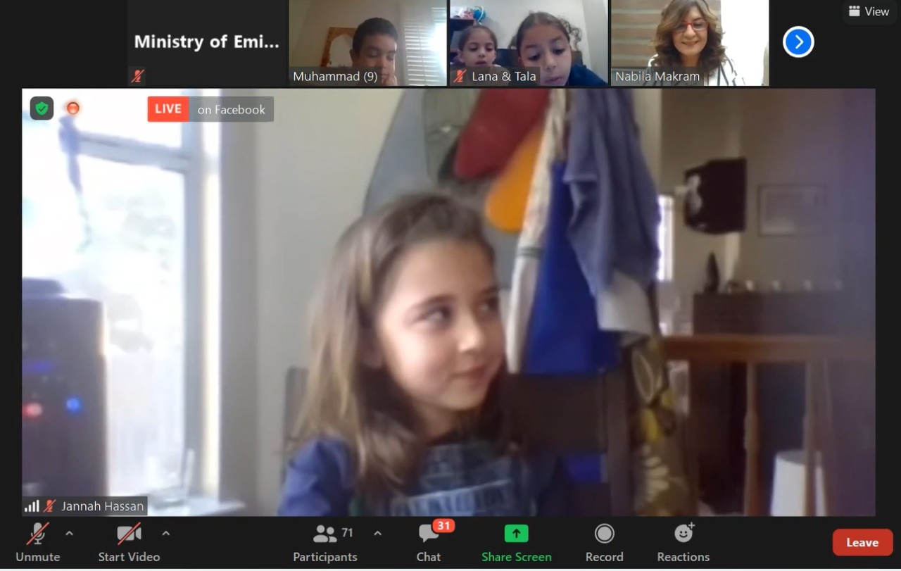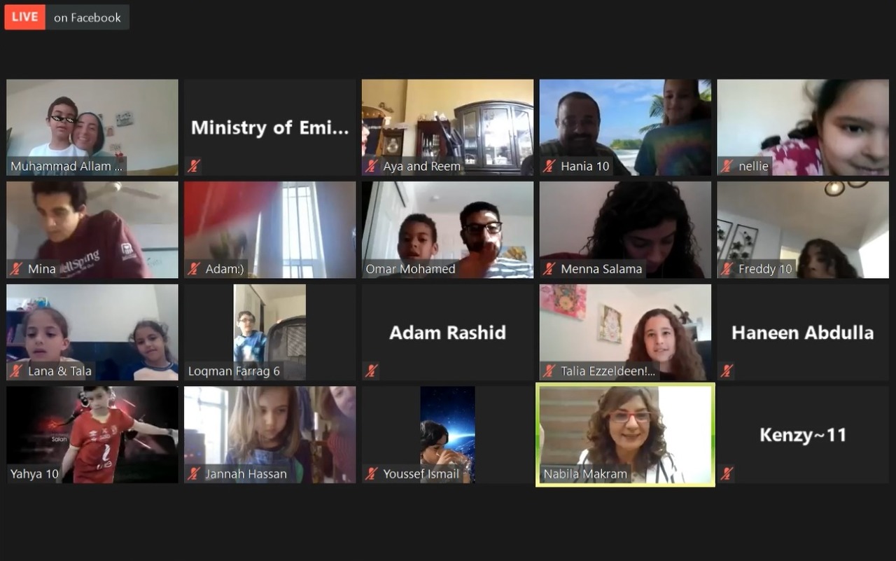 وأخذت السفيرة نبيلة مكرم تتحدث مع الأطفال وتتفاعل معهم من خلال طرح بعض الأسئلة عليهم عن الأكلات المصرية التي يحبونها، وعن علم مصر وألوانه، والمقتنيات المصرية التي يملكونها في منازلهم، والعادات المصرية في شهر رمضان الكريم.