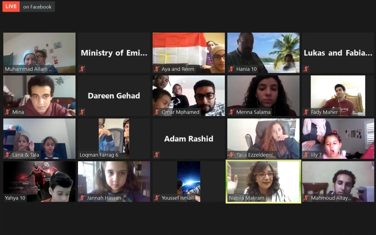 افتتحت السفيرة نبيلة مكرم عبد الشهيد وزيرة الهجرة وشئون المصريين بالخارج، فعاليات المعسكر الثالث عشر لمبادرة "اتكلم عربي" للأطفال المصريين المقيمين في ولاية كاليفورنيا بالولايات المتحدة الأمريكية، عبر تطبيق "زووم"، وذلك بالتعاون مع شركة "ويل سبرنج" المتخصصة في إقامة وتنظيم المعسكرات، حيث تناولت فعاليات المعسكر عرضًا لعدد من الأغاني التراثية المصرية وألعاب ومسابقات وأنشطة متنوعة تستهدف تعريف الأطفال بوطنهم مصر وتراثها.