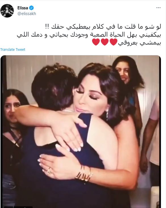 وشاركت إليسا الفيديو عبر حسابها الشخصي بموقع التغريدات القصيرة “تويتر"، وقالت: “لو شو ما قلت ما في كلام بيعطيكي حقك، بيكفيني بهل الحياة الصعبة وجودك بحياتي، ودمك اللي بيمشي بعروقي”.