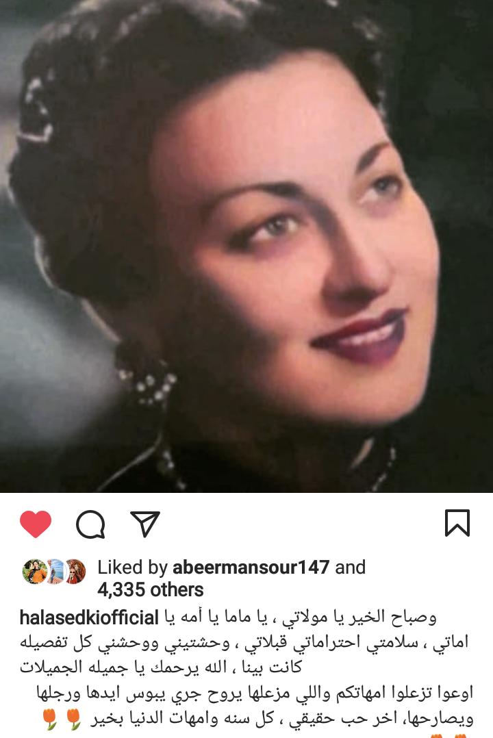 ونشرت “صدقي” صورة لوالدتها، عبر موقع تبادل الصور والفيديوهات "انستجرام"، وعلقت: "وصباح الخير يامولاتى، يا ماما يا أما يا أماتى، سلاماتى احتراماتى قبلاتى.. وحشتينى، ووحشتنى كل تفصيلة كانت بيننا، الله يرحمك ياجميلة الجميلات".
