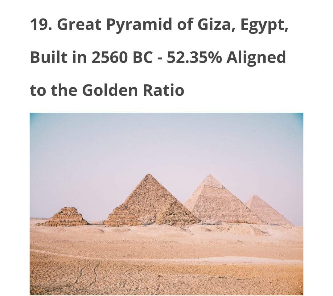 صنفت جريدة الديلي ميل الإنجليزية الهرم الأكبر بالجيزة ومعبد الأقصر بمدينة الأقصر، ضمن أجمل 50 مبنى في العالم، وفقًا للتقرير المصور الذي نشره موقع الجريدة، والذي اعتمد في تصنيفه على علم ونظرية "النسبة الذهبية"، حيث حصد الهرم الأكبر المركز رقم 19، ومعبد الأقصر المركز رقم 23.