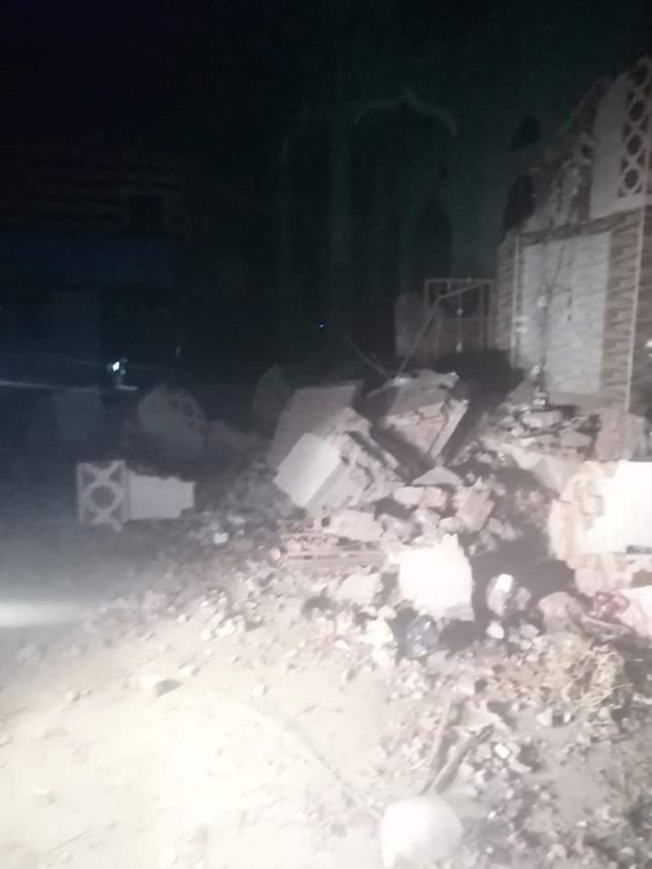 وقال شاهد عيان من أهالي القرية، في اتصال هاتفي: "فوجئنا بانهيار المئذنة وسور المدرسة بسبب سرعة الرياح، ولم يتسبب الحادث في وقوع أي إصابات، حيث انهارت المئذنة، في الساعات الأولى من صباح اليوم وسط غياب المارة في الشارع".